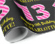 Dieses lustige, zum Geburtstag kommende Packpapier-Design verfügt über eine große Zahl "13" mit einem dunkelrosa und hellrosa Streifen Muster, zusammen mit der Meldung "Happy 13 th Birthday", und einem anpassbaren Namen. Der Hintergrund ist schwarz. Ein solches Umschlagpapier kann verwendet werden, wenn man ein Geschenk oder Geschenk zu Ehren des 13. Geburtstages von jemandem gibt. [~Z0000376]