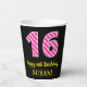 Fun Pink Streifen "16": Glücklicher 16. Geburtstag Pappbecher