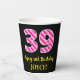 Fun Pink Streifen "39": Glücklicher 39. Geburtstag Pappbecher