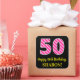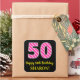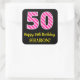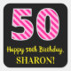 Fun Pink Streifen "50": Happy 50 th Birthday + Nam Quadratischer Aufkleber