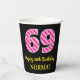 Fun Pink Streifen "69": Glücklich 69. Geburtstag + Pappbecher
