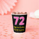 Dieses fröhliche, zum Geburtstag bestimmte Quadrat-Aufkleber-Design mit einer großen Zahl "72", mit einem hellrosa und dunkelrosa Streifen Muster. Es enthält auch die Meldung "Happy 72. Geburtstag", plus einen personalisierten Namen. Der Hintergrund ist schwarz. Papiertassen wie diese können zum Feiern von jemandes 72. Geburtstag benutzt werden. [~Z0000580]