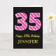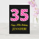 Fun Pink Striped "35"; Happy 35 th Birthday; Name Karte