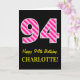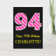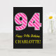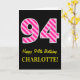 Fun Pink Striped "94"; Happy 94. Geburtstag; Name Karte