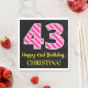 Dieses unterhaltsame, zum Geburtstag erschienene Papier-Serviettendesign weist eine große Zahl "43" mit einem dunkelrosa und hellrosa Streifen Muster auf, zusammen mit der Meldung "Happy 43. Birthday" und einem anpassbaren Namen. Der Hintergrund ist schwarz. Geburtstagsgezapftete Servietten wie diese können bei einem Party zum 30. Geburtstag von jemandem verwendet werden. [~Z0000380]