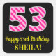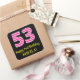 Fun Pink Stripes “53”: Happy 53rd Birthday + Name Quadratischer Aufkleber