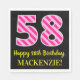 Fun Pink Stripes "58"; Happy 58 th Birthday; Name Serviette