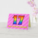 Fun Pink Stripes, Hearts, Rainbow # 17th Birthday Karte