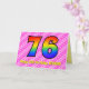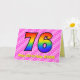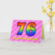This upbeat and festive 76th birthday greeting card design has a front featuring a large number "76" having a colorful pattern inspirred by the appearance of a rainbow spectrum, wir haben eine dark pink and light pink heart shapes striped pattern background. The front also feature the message "Happy 76th Birthday", and a custom recipient name. The inside feature a customized birthday greeting message, or could perhaps be cleared and left blank if a message is to be written by hand instead. A personalized birthday card like this might be a fun and happy way of sending birthday wishes to somebody who is celebrating their seventy sixth birthday. [~ Z0000418]