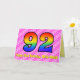 Dieses festliche und optimistische 92. Geburtstag Grußkarte Design hat eine Vorderseite mit einer großen Zahl "92" mit einem bunten Muster durch das Aussehen eines Regenbogenspektrums, auf einem dunkelrosa und hellrosa Herz Formen Streifen Muster Hintergrund. Auf der Vorderseite befinden sich auch die Meldung "Happy 92. Geburtstag" und ein benutzerdefinierbarer Empfängername. Im Inneren befindet sich eine personalisierte Geburtstagsgrüße, oder man könnte sie vielleicht löschen und links leer, wenn eine Nachricht von Hand geschrieben werden soll. Eine personalisierte Geburtstagskarte wie diese könnte ein lustiger und glücklicher Weg sein, den neunzigsten Geburtstag eines Menschen zu bestätigen. [~Z0000418]