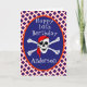 Diese lustige Geburtstagskarte hat einen Piratenschädel und Kreuzknochen. Der Pirat trägt einen roten Kopfschal. Auf der Vorderseite ist eine Vorlage für das Alter des Kindes mit dem Namen des Kindes. Der Pirat und der Text sind in einem schönen hellen Marineblau gerahmt. Das Kunstwerk ist mit einem fröhlichen marineblauen blauen und roten Karo gegen Weiß hinterlegt. Im Inneren der Karte befinden sich ein Kantenanker, eine Möwe und nautische Flaggen. Der Innengruss lautet: Wir wünschen Ihnen die glücklichste und hellste Zukunft, die Sie haben können. Herzlichen Glückwunsch zum Geburtstag (BITTE ÄNDERN SIE SICH AN DEN NAMEN IHRES KINDES), Sie phantastisch, charmanter Junge (kann auf Mädchen umgestellt werden). Hier sind noch mehr Abenteuer zu erleben! Unter dem Gruß für deinen Namen befindet sich eine Vorlage. Auf der Rückseite des Hotels befindet sich ein Segelboot, mit zusätzlichen Vorlagen, die personalisiert werden müssen, inklusive Datum.