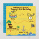 Fett gelbe Pirat Thema Einladungen mit Spaß und interaktive Karte für die Party Piraten folgen. ©2022 Miss Sassy Party Designs