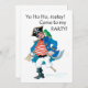 Party Einladung eines Kindes mit einem Piraten und seinem Papagei, aus einer skurrilen Aquarellillustrierung von Judy Adamson. Die Rückseite der Karte wird leer verlassen, um die Details auszufüllen. T - Shirt und andere Produkte sind auch mit diesem Design erhältlich.