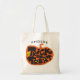 This Fun Playful Pumpkin Halloween Tote Bag features a whimsical trick or treat theme with retro vibe. Customizable name and colors. Designed by Quirkytown Creative. Image © Doug Davis. www.zazzle.com/store/QuirkyTownCreative