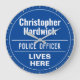 Vergnügen Gedenkmauer Wandmalereien in Form einer Wall-Uhr für einen Polizeibeamten. Blaue und weiße Plakette. Bearbeiten Sie das Design, um die Formulierung so zu ändern, dass der Empfänger des Geschenks Anzug erhält.