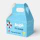 Gefallen Box für Geburtstagsparty das gleiche Design wie Einladung, Dankeschön Karte, und andere Produkte sind mit Wasser Pool Hintergrund mit Schwimmfutter. #fun #poolparty #Enjoy #waterpool #blue #white #favorbox #ebdayparty #swimsuit #gogglelens #flipflops #sunblock
