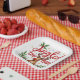 Fun Quote Jingled Too Hard Christmas. Red Script and a cute reindeer humor for your party table.