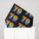 Dieses bunte, lebendige Gewebepapier-Design zeichnet sich durch die Zahl "79" aus, die ein farbenfroh regenbogenähnliches Farbverlaufsmuster auf schwarzem Hintergrund aufweist. Diese Papiertücher könnten vielleicht zum Verpacken von Geschenken oder Geschenken verwendet werden, die für den neunundsiebzigsten Geburtstag eines Mannes gegeben werden, oder vielleicht für ein Paar zum neunundsiebzigsten Hochzeitstag, oder für ein anderes 79. Ereignis. [~Z0000331]