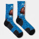 Jede Socke hat einen niedlichen Kokosoktopus in einer Weihnachtsmannmütze über blauem Wasser.