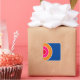 Dieses moderne geometrische Design zeichnet sich durch seine dunkelblauen und hellen roten, orangen und rosa konzentrischen Kreisringe aus, die ein fröhliches, festliches Ambiente ausstrahlen.