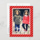 Eine schicke Grußkarte mit einem hübschen und modernen Script-Schriftart auf einem angesagten Winterferien-Muster mit weißen Streifen auf rotem Hintergrund. Mit der Option, um mit einem Foto und (begrenzten) Text Ihrer Wahl zu personalisieren oder anzupassen.