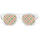 These fun party sunglasses are designed with a retro checkerboard design in pink, orange, olive toned greens, and cream. Simple and cute - perfect for a birthday party or other special occasion! Great for the party itself or for send-home favors! *Pattern by Tracey Khalei / Orabella Prints.