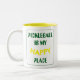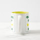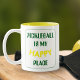 Diese lustige Retro-gelbe zweifarbige Kaffeemaschine Tasse hat die Worte "Pickleball ist mein glücklicher Platz" in grün und gelb. Ein Retro-Typografie-Design, das auffällig und farbenfroh ist. Ein brillantes Geschenk für einen Pickleball-Spieler, Coach oder Liga. Die Textfarben können an die Tasse angepasst werden. Geh und spiele.