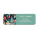 Weihnachtsschmuck hängt dekorativ von einem grünlich gepflasterten Urlaubshaus. So farbenfroh und festlich. Und wir können durch das Blätterdach einen anderen, mit gelben Zöpfen geschmückten Kiefernbaum sehen, nah von dem, sichtbar am Nachthimmel. Nur magisch in diesem Retro-Design. Der gesamte Text auf dieser Rücksendeadresse ist editierbar, inklusive dem "Frohen Weihnachten" Gruß. Vergewissern Sie sich, dass Sie den Familiennamen und die Adresseinträge des Beispiels zu den Einträgen Ihrer Wahl ändern.