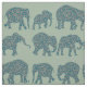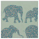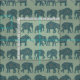 Ein lustiges Fabric, mit Reihen von Elephant-Silhouetten, gefüllt mit einem dunkelblauen und bordeauxfarbenen Paisley-Muster, auf einem Sage Green Hintergrund. Teil der Posh & Painterly 'Heffalumps' Kollektion.