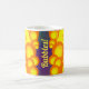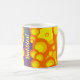 Ein toller Spaß abstrakten 1970er Jahre Orangenblase Spaß bunte Wirble super 70er Cartoon Muster Design 8-Track Spaß Boogie Tanz Fieber super groovy illustriert positive Vibes Retro ästhetische funky Blitzback Vintag Nostalgie Kaffee, Tee, Kakao-Keramik oder Reisetug. Holen Sie sich heute einen lustigen und niedlichen 70er Spaß Design Cup.