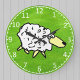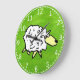 Eine Cartoon-Abbildung eines Schafes auf einem grünen Feld. Landwirtschaft, Landwirtschaft oder Bauernstil. Wanduhr des Bauern.