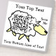 Ihr Business QR Code mit einer Fun Cartoon Sheep Illustration auf einem Aufkleber. Ersetzen Sie den QR-Code mit Ihrem eigenen. Größe 8" x 8".