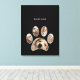 Show your love for your pet with this cute and simple custom photo collage design on this wrapped canvas print featuring your pet's name along with five of your pet's photos in a paw print outlined in white over a black background.