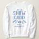 Das sonnige Sweatshirt mit einem zeichn aus Wintergebirgen, Bäumen, einem Skifahrer, dem humorvollen Sprichwort "bis zum Schnee gut" und einer leicht zu personalisierenden Textvorlage.