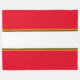 Dieses farbenfrohe, sportliche Design besticht durch seinen eleganten, modernen schwarzen Schriftart in einem weitläufigen, weißen Mittelstreifen, der mit orangen und goldbraunen Pinstreifen auf einem fett hellen, roten Hintergrund hervorgehoben wurde.
