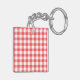 Ein unterhaltsamer Square Keyring, um mit Country-Stil, Mix'n'match-Muster aus niedlichen roten Drachen auf grünem Hintergrund und Rot-Weiß-Karo Gingham zu personalisieren.