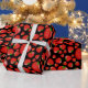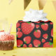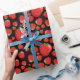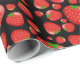 Neuartiges Verpackungspapier aus verschiedenen Größen Sternbeeren verstreut zufällig auf einem schwarzen Hintergrund. Das perfekte Geschenk in diesem köstlichen Papier packen.