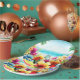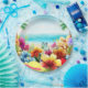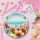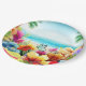 Diese Papiertafel ist ein lustiges Design für den Sommer mit einer Strandszene mit Blume, Schmetterlingen, Palmen und Strand und Ozean im Hintergrund. Dies wäre ideal für jedes Party oder Picknick im Sommer.