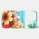 Dieses gedreht iPhone Gehäuse hat ein lustiges Design für den Sommer mit einer Szene mit Strand mit Blume, Palmen, Strand und Ozean im Hintergrund. Das Bild ist lustig und farbenfroh, es ist perfekt für die Schaffung eines Sommerlebens.