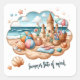 Vintages Summer Beach Stickers Life ist ein Strand. Sandburgen am Strand in der Sonne. Spaß Sommeraufkleber
