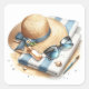 Vintager Sommer-Strandaufkleber Sonnenbrille, Badetücher am Strand. Spaß Sommeraufkleber