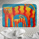 Eine niedliche, farbenfrohe Katze und gemusterte Badematte. von Julie Nicholls©