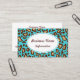 Die berufliche Visitenkarte wird von einem hellen, türkisfarbenen und braunen Leopardenprint geschmückt. Passen Sie diese Visitenkarte an, um Ihren Anzug zu gewährleisten. Das Design stammt aus der Originalkunst. Benutzen Sie diese stilvolle Visitenkarte für eine Bäckerei, Berater, Boutique, Mode, Kleidung, Umbauten, Dekoration, Boutique, Makeup Künstler, Kosmetologe, Termine, Friseur, Salon, Wellness-Center, Nagelstudio, Wohngestaltung, Innenarchitektur, Musiker, etc...
