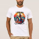 Ein Cowboy reitet durch eine Stadt-Skyline im Hintergrund.