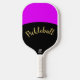 Dieses festliche, farbenfrohe Design bietet einen zentrierten "Pickleball"-Text, der in festlicher Schrift-Typografie vor einem gekrümmten schwarzen Hintergrund geschrieben ist. Ein leuchtend lebendiger Lavendel rosa Oberhintergrund rundet die fröhliche Komposition ab.