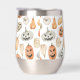 Dieses Design zeichnet sich durch ein reizvolles Wasserfarbenmuster aus Kürbissen und Jack-o'-Laternen in einer sanften, gedämpften Farbpalette aus. Das Design umfasst verschiedene Kürbisformen und -größen, die in sanften Orange-, Creme- und Grautönen gestrichen sind. Jeder Jack-o'-Laterne hat ein einzigartiges, gemeißeltes Gesicht, das von fröhlich und freundlich bis leicht spöttisch reicht und dem Muster Charakter und Abwechslung verleiht. Die Kürbis sind auf einem sauberen, weißen Hintergrund angeordnet, wodurch sich die zarten Aquarelltexturen herausstellen können. Das Gesamtdesign ist festlich und ansprechend, ideal, um den skurrilen Geist von Halloween auf gemütliche, künstlerische Weise zu erfassen.