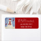 Dieses Adressetikett zeigt einen lustigen Schneemann mit einem roten Hut, Fäusten und Schal, stehend im fallenden Schnee.