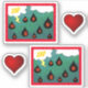 Thunderblumen Comic buchen Stil Pop Kunst und rotes Herz Set. farbenfroher, spaßiger Cartoon mit knusprigen weißen Wolken und gelben Blitzen, schwarzen Regentropfen und roten Blume in ihnen fallen auf einem grünen Schieferkalkbretthimmel auf den Boden. Zwei Bonus rote Herzen.