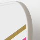 Dieses schicke, sportliche Design zeichnet sich durch einen weißen Hintergrund mit breiten goldgelben und leuchtend rosa Mitte horizontalen Rennstreifen und warmen braunen pinstripes aus.