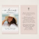 Keep the memory of a loved one close with this custom color personalized prayer card (shown in blush pink) featuring one treasured photo, the sentiment IN LOVING MEMORY, name and dates on the front and an editable prayer accented with a simple cross on the back. With its simple yet elegant design and modern script typography, it makes a meaningful keepsake to share at a funeral, memorial service or Celebration of Life and offers comfort and a lasting tribute for family and friends. Its small and portable size of 3.5x2" (wallet-sized) makes it convenient for loved ones to carry it with them as a reminder of your loved one’s life and spirit. Personalization makes each card unique.